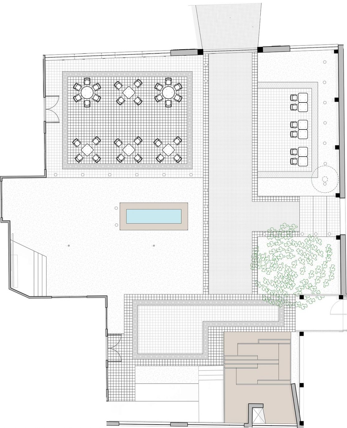 O primeiro projeto da Studio Mind concebido totalmente a céu aberto, tem uma área de 606 metros quadrados e capacidade para até 400 pessoas. O pátio recepciona as pessoas que chegam ao complexo de entretenimento La Fábrica.