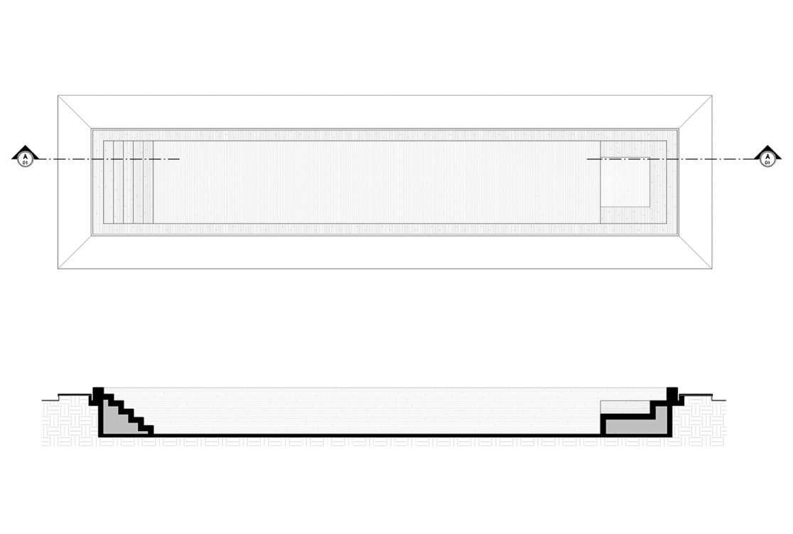 O MAR: Uma piscina com quatro bordas infinitas de água salgada foi projetada para fazer parte do dia a dia das clientes. Ela foi conectada ao coração da casa e à cozinha por um estar aberto.